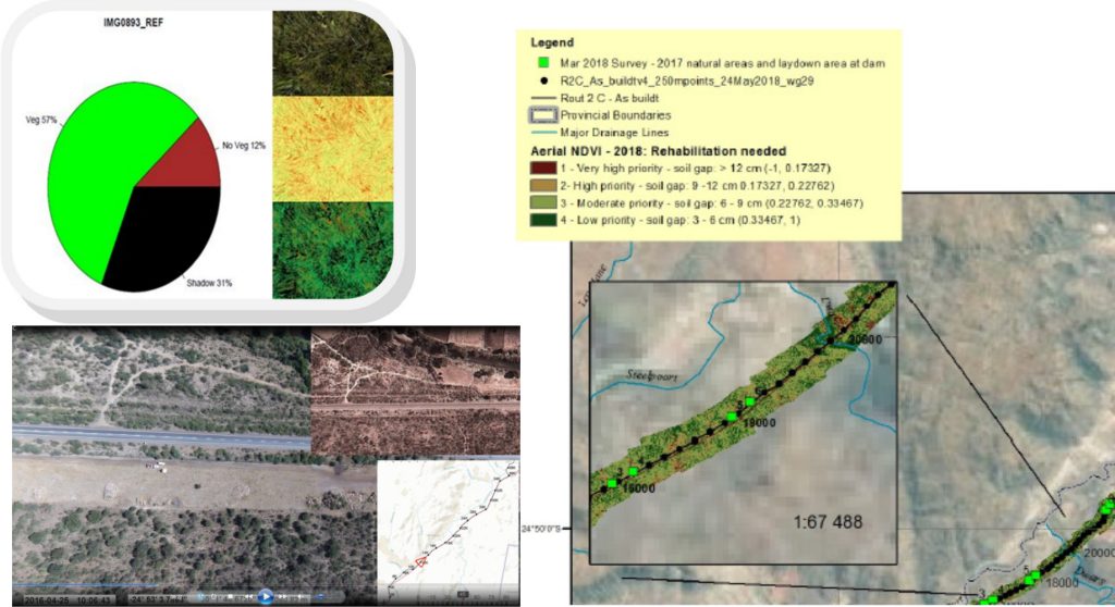 In line with the current information technology-driven society, EIAA uses various remote platforms to assist with environmental monitoring and management. A picture provides a thousand words, and with the aid of modern technology, it is possible to provide regular environmental images at a low cost. The images are time- and date-stamped as well as spatially referenced, thereby providing current and future reference information. Through the electromagnetic spectrum, specifically the near-infrared band, it is possible to measure: